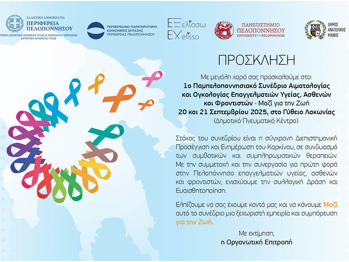 1ο Παμπελοποννησιακό Συνέδριο Αιματολογίας-Ογκολογίας «Μαζί για την Ζωή» με την υποστήριξη της Περιφέρειας Πελοποννήσου – Περιφέρεια Πελοποννήσου