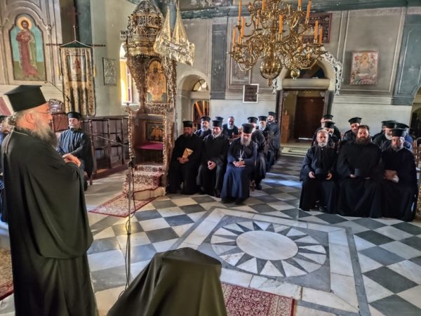 Τέλος, ο Σεβασμιώτατος, μιλώντας στους Πατέρες – πολλοί από τους οποίους αποτελούν δικές του χειροτονίες – ευχαρίστησε όσους τον προσφώνησαν και, με διάθεση εξομολογητική, αναφέρθηκε στην πορεία του ως κληρικού για περισσότερα από πενήντα χρόνια και ως Επισκόπου της ακριτικής Ιεράς Μητροπόλεως Σάμου, Ικαρίας και Κορσεών.
