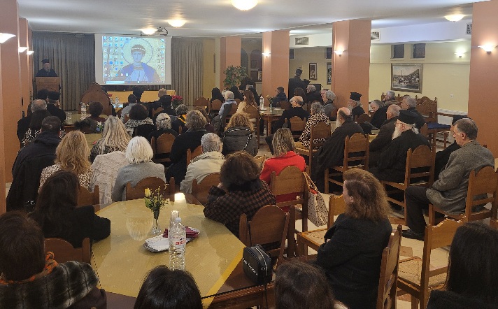 Κατόπιν ζητήθηκε από την καθηγήτρια Θεολογικής Σχολής Αθηνών, με καταγωγή από την Ναύπακτο, κ. Μαρίνα Κολοβοπούλου, που ήταν παρούσα στην προβολή, να απευθύνει έναν χαιρετισμό στην σύναξη. Εκείνη εξέφρασε την χαρά της και καταλήγοντας τόνισε ότι ο Σεβασμιώτατος Μητροπολίτης κ. Ιερόθεος με το έργο του, κυρίως το συγγραφικό, δεν είναι απλώς Μητροπολίτης Ναυπάκτου, αλλά Μητροπολίτης της Καθολικής Ορθόδοξης Εκκλησίας﮲ μέσω της ανάγνωσης των συγγραμμάτων του έχει πνευματικά τέκνα, που δεν τα γνωρίζει, σε όλον τον κόσμο.