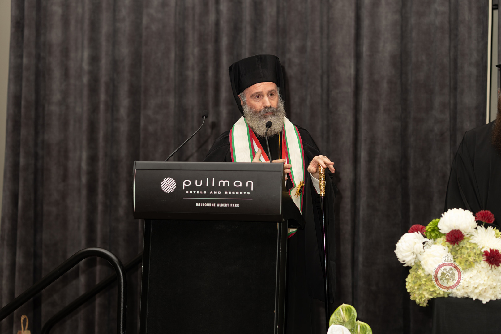 Νωρίτερα, εμφανώς συγκινημένος,ο Σεβασμιώτατος, ευχαρίστησε άπαντες για την παρουσία τους, δοξολογώντας παράλληλα τον Θεό για όλα τα αγαθά και τις ευλογίες που χαρίζει στην Ιερά Αρχιεπισκοπή Αυστραλίας. «Η δοξολογία του Θεού, λόγοις και έργοις, είναι η πεμπτουσία της ζωής μας μέσα στην Εκκλησία, είναι το θεμέλιο της πνευματικής ζωής και υπάρξεως», τόνισε μεταξύ άλλων.