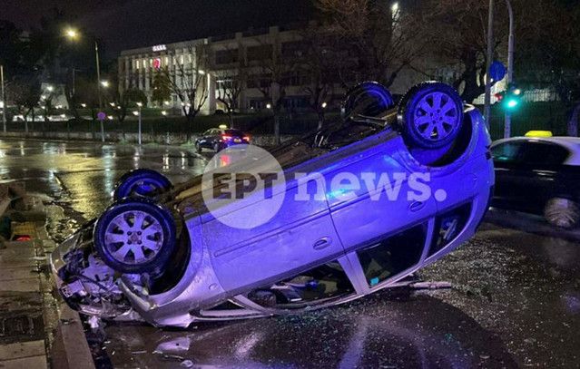 Αυτοκίνητο αναποδογύρισε στη μέση του δρόμου στη Θεσσαλονίκη – Ένας τραυματίας