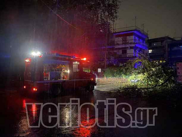 Αυτοκίνητο καταπλακώθηκε από μεγάλο δέντρο στη Βέροια – Ο πλάτανος έπεσε από την κακοκαιρία