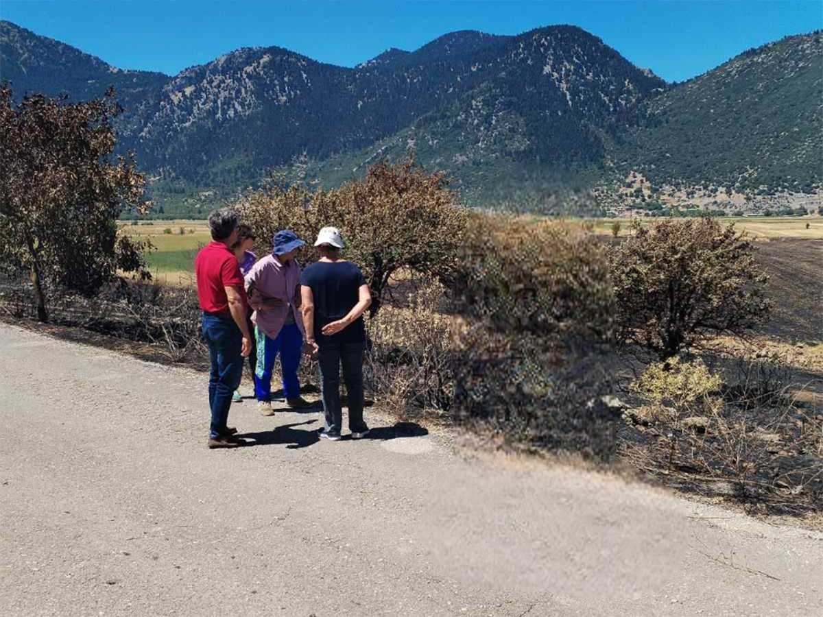 Στις πληγείσες περιοχές της Ορεινής Κορινθίας μετέβη ο Αντιπεριφερειάρχης Αγροτικής Οικονομίας και Κτηνιατρικής της Περιφέρειας Πελοποννήσου, Σπυρίδων Ζαχαριάς, συνοδευόμενος από τη Διευθύντρια του ΕΛΓΑ Πατρών, κα Αγγελική Πανταζοπούλου, και την Αντιπεριφερειάρχη Πολιτισμού, Αθηνά Κόρκα, προκειμένου να πραγματοποιηθεί επιτόπια αυτοψία και αποτίμηση των ζημιών που προκάλεσε η πρόσφατη πυρκαγιά στην αγροτική παραγωγή.