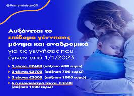 Η αύξηση αυτή θα είναι αναδρομική και θα ισχύσει και για τις γεννήσεις που έγιναν το 2023.