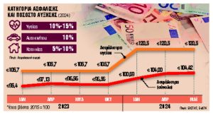 Ανατιμήσεις 14% έχουμε στα ασφάλιστρα υγείας.