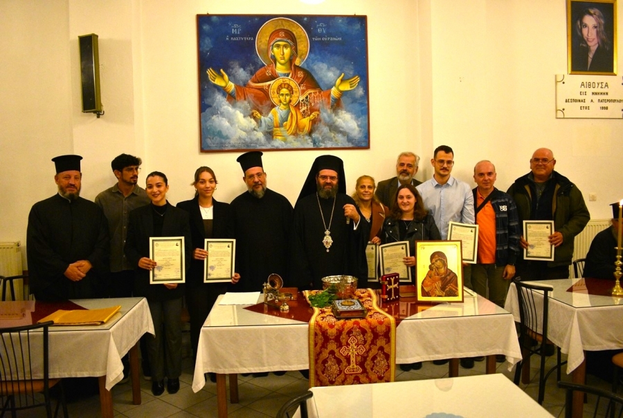 Εν συνεχεία, ο Σεβασμιώτατος επέδωσε τα διπλώματα και τα πτυχία στους σπουδαστές που ολοκλήρωσαν με επιτυχία τις σπουδές τους κατά τον παρελθόντα Ιούνιο. Δίπλωμα Βυζαντινής Μουσικής έλαβαν οι Ελένη Τσουραπούλη, Αναστάσιος Βαλσαμόπουλος, Φωτεινή Κωστοπούλου και Εμμανουήλ Μυρωνάκης ενώ Πτυχίο Βυζαντινής Μουσικής έλαβαν οι Δημήτριος Τσίπης, Χρυσούλα Παπαδοπούλου, και Μαρία-Παγώνα Μάστορα.