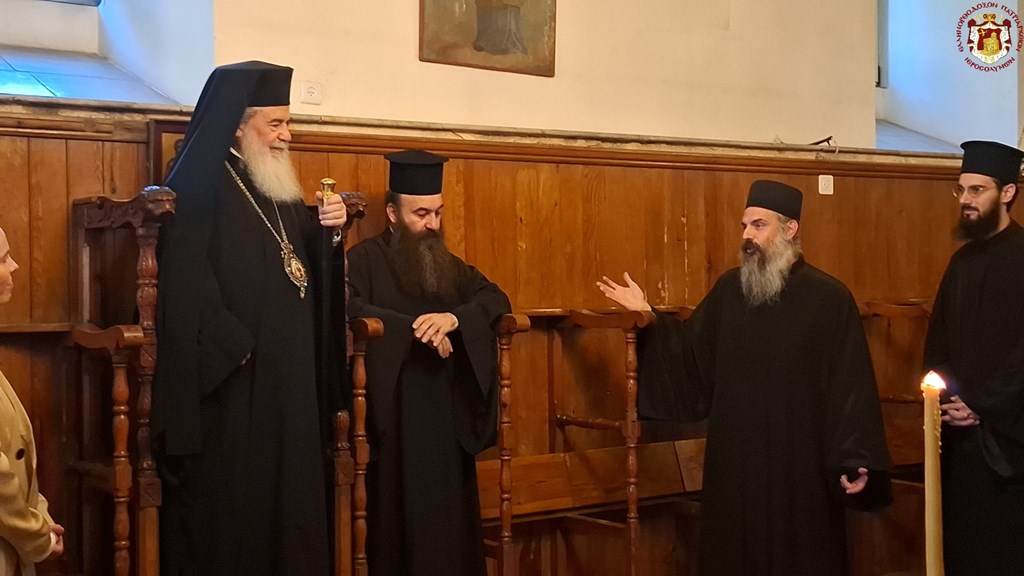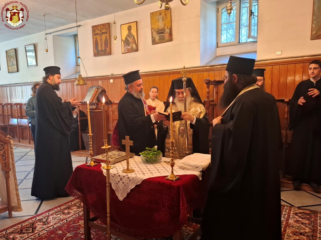 Την Πέμπτη, 25 Σεπτεμβρίου 2025, τελέσθηκε Αγιασμός από τον Πατριάρχη Ιεροσολύμων κ.κ. Θεοφίλου στον ιερό Ναό της Αγίας Τριάδος της Πατριαρχικής Σχολής Σιών, παρουσία του Προέδρου της Σχολικής Εφορίας Σεβασμιωτάτου Αρχιεπισκόπου Ιεραπόλεως κ. Ισιδώρου, των Ιερέων και του Αρχιδιακόνου π. Μάρκου, του Σχολάρχου μοναχού π. Βασιλείου και της αντιπροσώπου του Ελληνικού Γενικού Προξενείου κ. Άννης Μάντικα, των καθηγητών και των δοκίμων μαθητών της Σχολής.