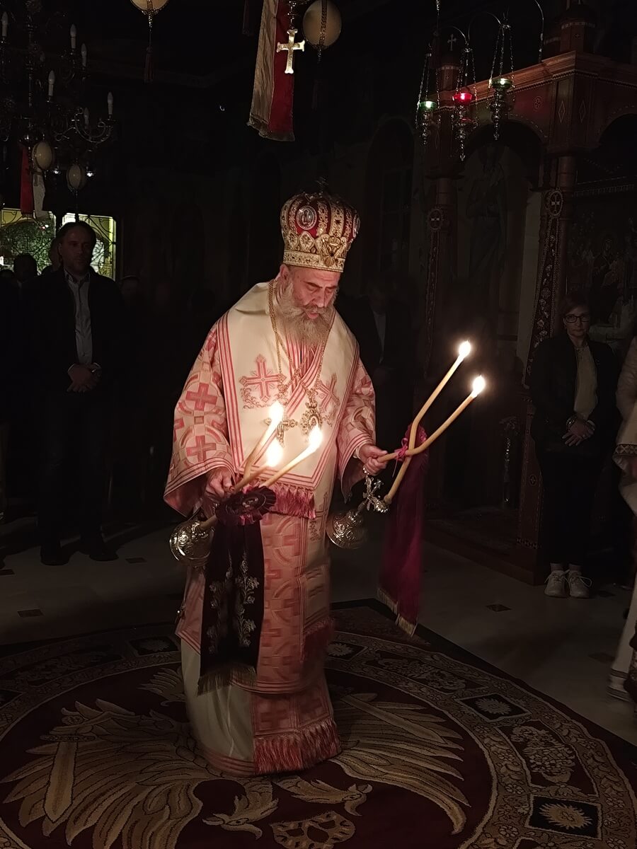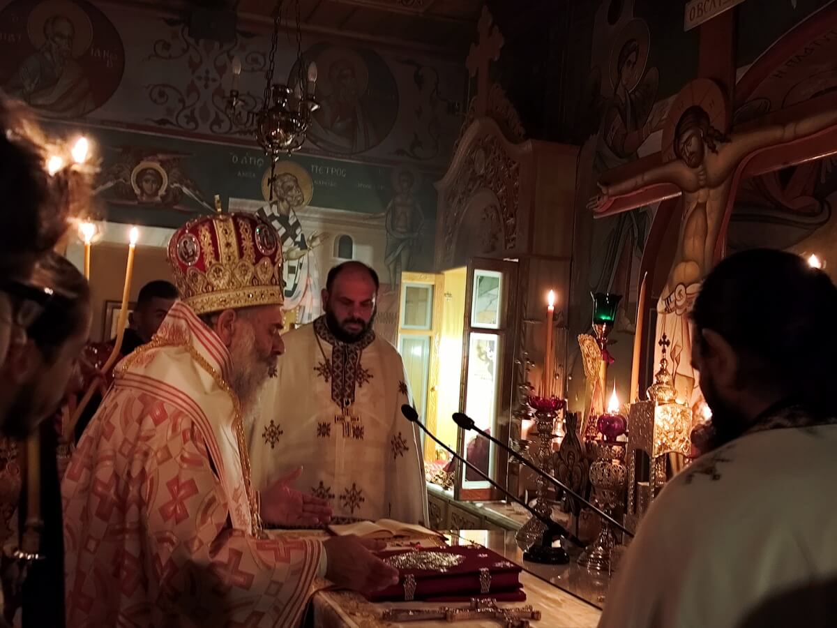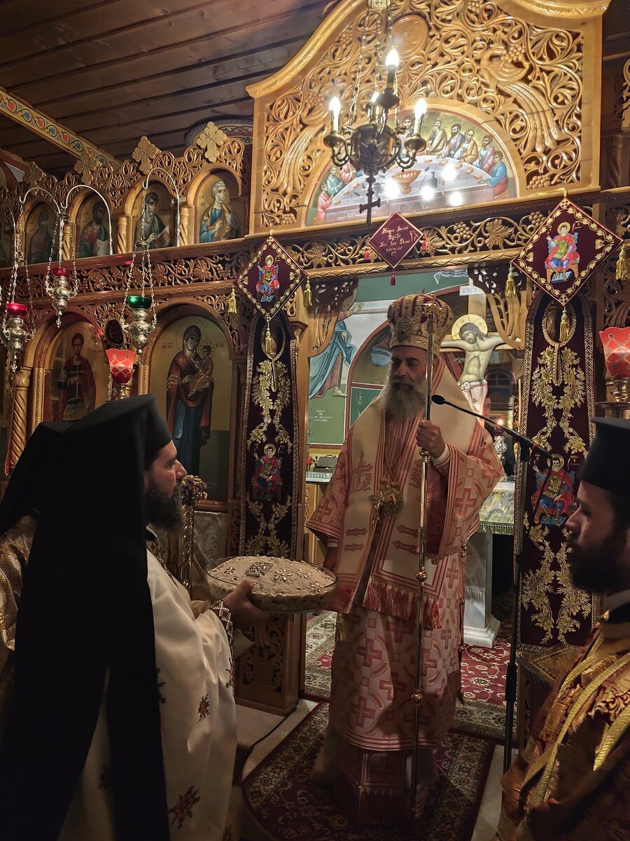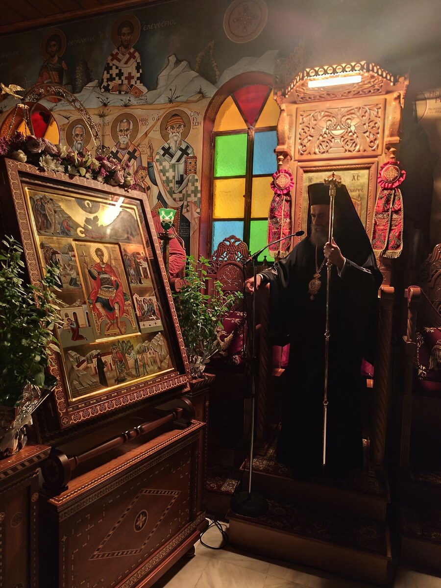 Χαίρομαι λοιπόν που φέτος μου δόθηκε η ευκαιρία να είμαστε όλοι μαζί, να τελέσουμε τις Ιερές Ακολουθίες του Όρθρου, του Εσπερινού εσείς νωρίτερα, αλλά και της Θείας Λειτουργίας. Να γευθούμε τον Χριστό, να είναι ανάμεσά μας ο Άγιός μας και να βιώσουμε αυτήν την Βασιλεία του Θεού, με πρώτον παρόντα τον Άγιο Νικόλαο τον οσιομάρτυρα και μέσα μαζί με Αυτόν και όλους εμάς για να χαιρόμαστε μέσα στη Βασιλεία του Θεού.