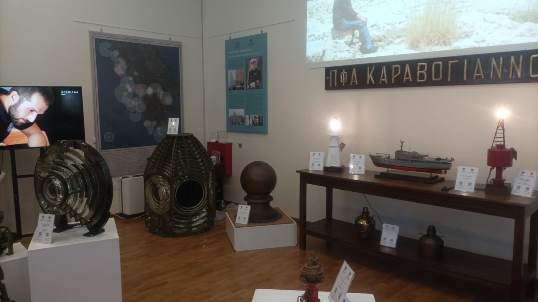 Η έκθεση αφηγείται την ιστορική εξέλιξη των φάρων της Ελλάδας και ενημερώνει τους επισκέπτες για το φαρικό δίκτυο. Στο ισόγειο του Μεγάρου Χρυσόγελου εκτίθενται σπάνια αντικείμενα και κειμήλια της Υπηρεσίας Φάρων ενώ ιδιαίτερη εντύπωση προκαλούν οι φακοί Fresnel, οι οποίοι χρησιμοποιούνται στους φάρους.