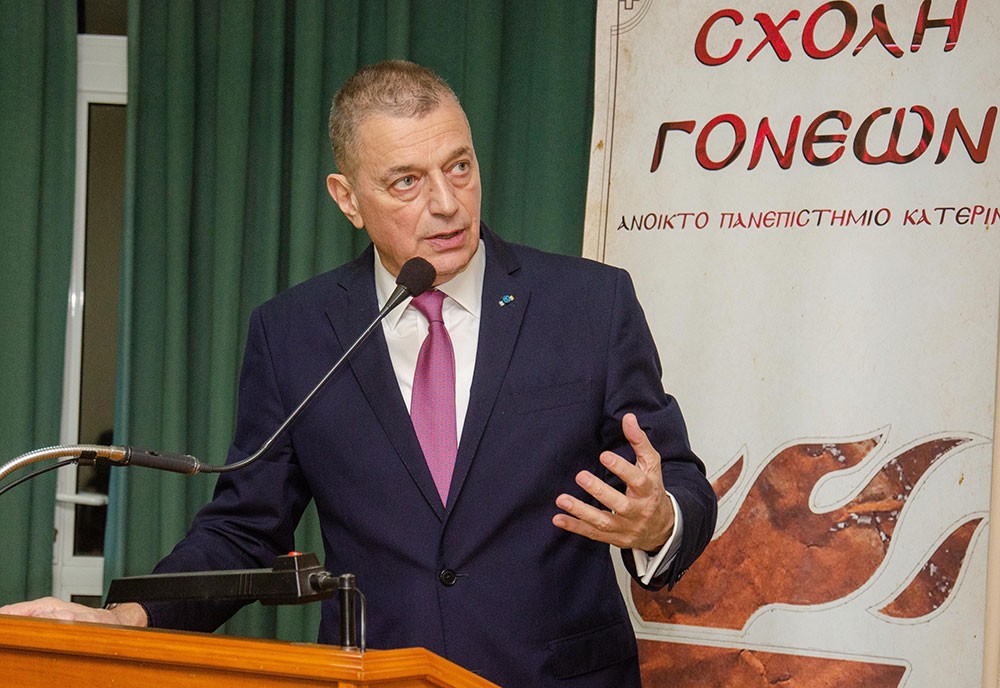 «H Οικουμενική Ακτινοβολία του Αγίου Όρους» ήταν το θέμα της εισήγησης του Πολιτικού Διοικητού του Αγίου Όρους, Επίτιμου Α.Γ.Ε.Σ. και πρώην Υπουργού Εθνικής Άμυνας κ. Αλκιβιάδη Στεφανή την Δευτέρα 2 Φεβρουαρίου 2026 στην Σχολή Γονέων – Ανοικτό Πανεπιστήμιο Κατερίνης. Η εκδήλωση έγινε σε Συνδιοργάνωση με το Κοινωφελές Ίδρυμα Αθανασίου & Μαρίνας Μαρτίνου.