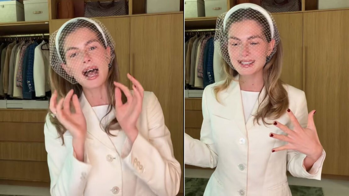 Στη συνέχεια αποκάλυψε ότι το σακάκι που θα φορέσει είναι δανεικό από τη γιαγιά της, ενώ θέλησε να κάνει και τα έθιμα της Αμερικής, μιας και οι νύφες εκεί πρέπει να έχουν κάτι δανεικό, κάτι καινούργιο και κάτι μπλε. Έτσι έβαλε μπλε τσάντα, ενώ το βέλο που φόρεσε στα μαλλιά της ήταν ολοκαίνουργιο.
