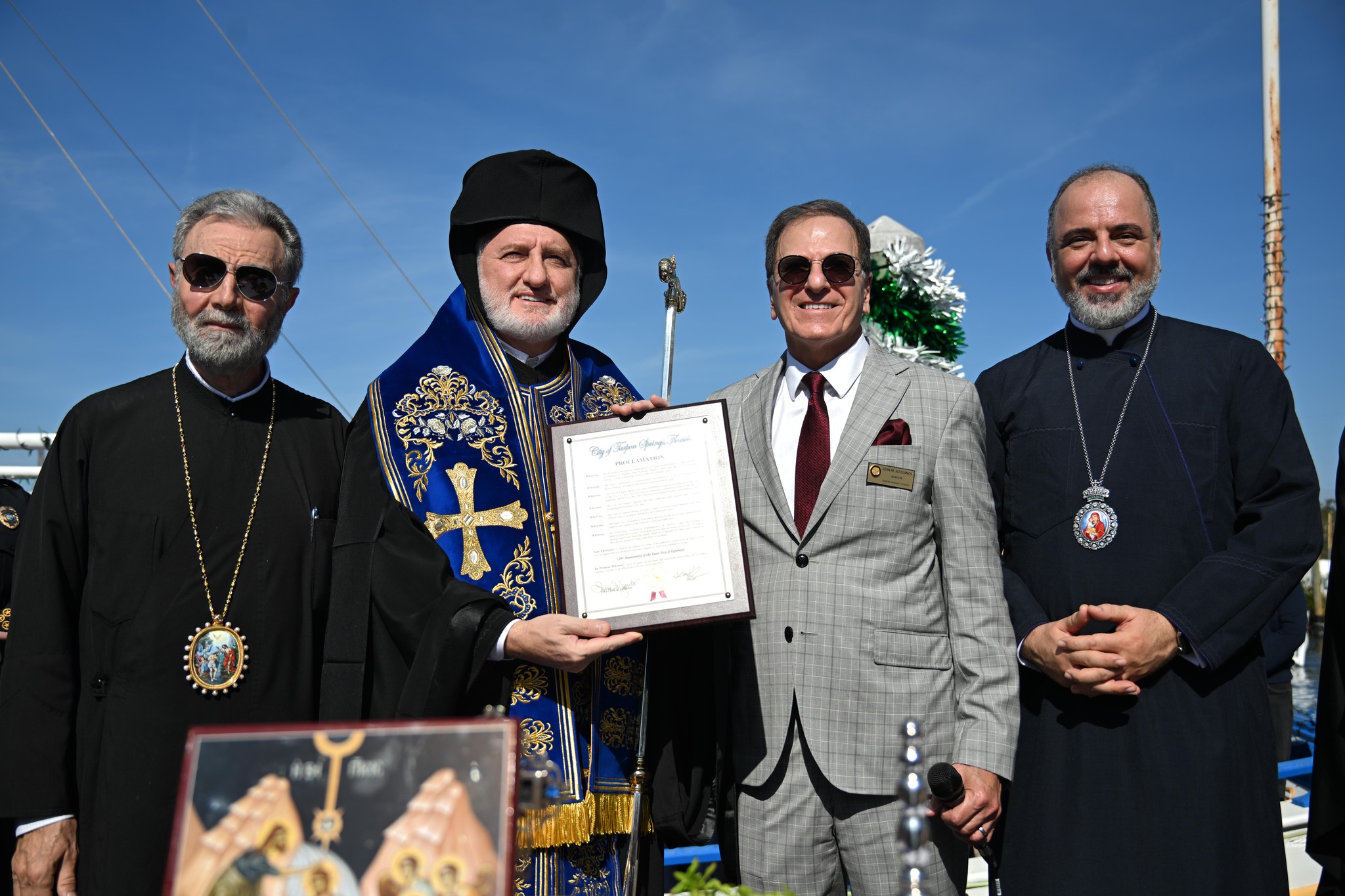 Στις 5 Ιανουαρίου, ο Σεβασμιότατος Αρχιεπίσκοπος Αμερικής κ. Ελπιδοφόρος έγινε δεκτός από τον Δήμαρχο του Τάρπον Σπρινγκς, Τζον Κουλιανό, για την ετήσια ευλογία σφουγγαράδικων και αλιευτικών σκαφών, καθώς και για τον σημερινό εορτασμό της 120ής συνεχόμενης εορτής των Θεοφανείων σε αυτό το σημαντικό κέντρο την Ελληνικής ομογένειας στις ΗΠΑ.