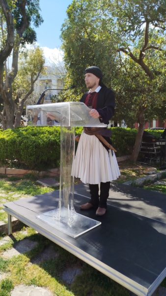 Ο Σεβασμιώτατος Μητροπολίτης Πατρών κ. Χρυσόστομος, μετά το Τρισάγιο υπέρ μακαρίας μνήμης και αιωνίου αναπαύσεως του Παλαιών Πατρών Γερμανού και των αγωνιστών και μαρτύρων υπέρ πίστεως και πατρίδος, μίλησε με πατριωτικό παλμό για τα γεγονότα και επαίνεσε τον Σύλλογο «Μωραΐτες εν χορώ» για τον πατριωτισμό τους και τους αγώνες τους για τη διατήρηση της Εθνικοθρησκευτικής μας παραδόσεως.