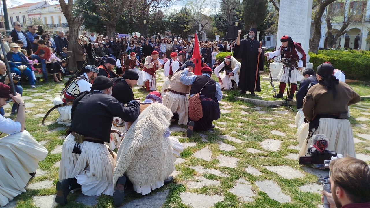 Στην Πλατεία Αγίου Γεωργίου των Πατρών, αναβίωσε για μια ακόμη φορά την Κυριακή 22 Μαρτίου 2026 η τελετή της Ορκωμοσίας των Οπλαρχηγών και Πολεμιστών του 1821 και η ύψωση της Σημαίας, από τον θρυλικό Ιεράρχη των Πατρών, τον γνωστό ως Παλαιών Πατρών Γερμανό.