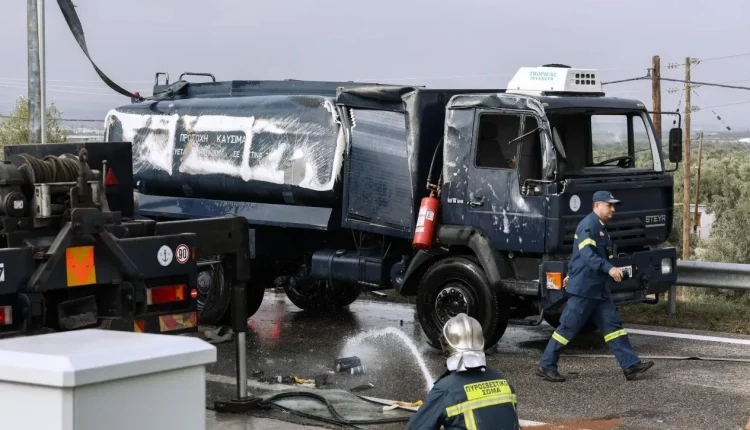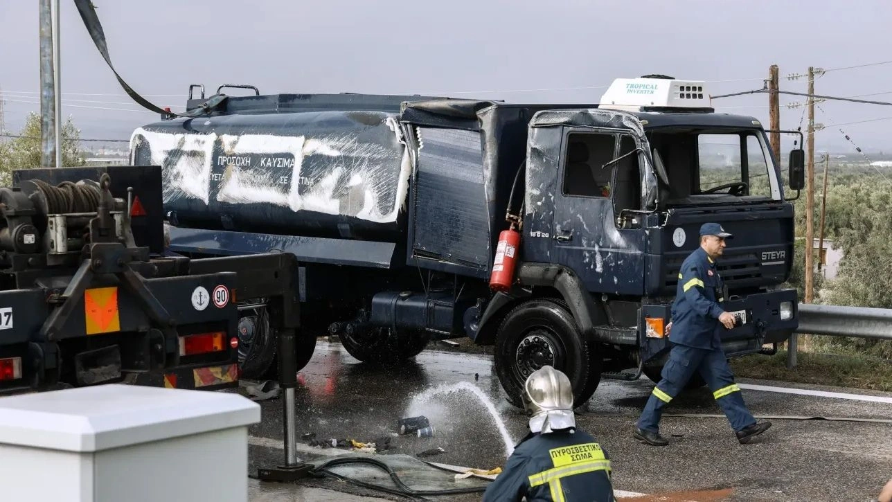 Ο οδηγός του βυτιοφόρου φέρεται να έχει τραυματιστεί ελαφρά, σύμφωνα με τις πρώτες πληροφορίες.