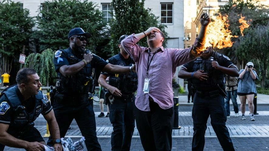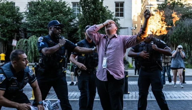 Συναγερμός σήμανε σε διαδήλωση ενάντια στον πόλεμο στη Γάζα που πραγματοποιήθηκε στην Ουάσινγκτον, όταν ένας άνδρας επιχείρησε να αυτοπυρποληθεί έξω από τον Λευκό Οίκο.