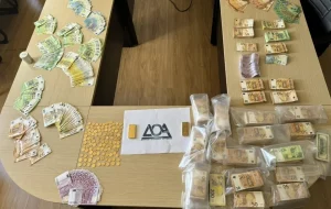 Πρόκειται για τη στιγμή που έβαλαν πάνω σε ένα τετράγωνο τραπέζι της ΓΑΔΑ το σύνολο των κατασχεθέντων χρημάτων. Μπροστά τους είχαν «τούβλα» από μετρητά, τα οποία συναντά κανείς μόνο σε γκανγκστερικές ταινίες. Χρειάστηκε να περάσει ώρα για να μετρηθούν τα κολλαριστά χαρτονομίσματα των 500, 200, 100 και 50 ευρώ.