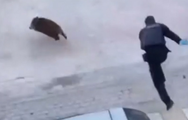 Σε ένα από τα βίντεο που κυκλοφορούν, φαίνεται αστυνομικός να γλιστράει κατά τη διάρκεια της προσπάθειας να ακινητοποιήσει το ζώο. Σε άλλο βίντεο, το αγριογούρουνο φαίνεται να έχει εγκλωβιστεί μέσα σε ένα σχολείο της περιοχής, αφού κινητοποιήθηκαν τόσο η δημοτική υπηρεσία όσο και η δασική υπηρεσία.