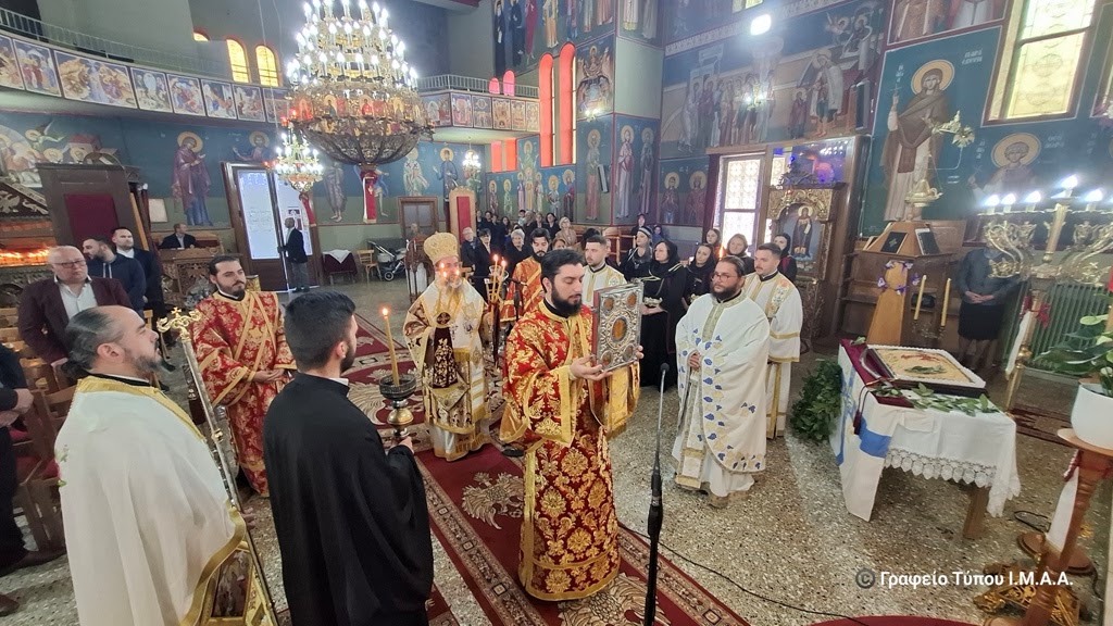 Αρχικά, στον Ιερό Ναό Κοιμήσεως της Θεοτόκου τελέσθηκαν η Ακολουθία του Όρθρου και η Αρχιερατική Θεία Λειτουργία, προεξάρχοντος του Σεβασμιωτάτου Μητροπολίτου Αιτωλίας και Ακαρνανίας κ. Δαμασκηνού.