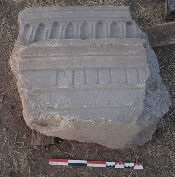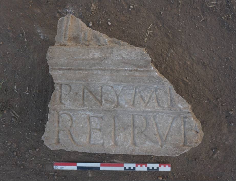 Τα φετινά ευρήματα της ανασκαφής είναι, κυρίως, κεραμική, χάλκινα νομίσματα, μετάλλινα αντικείμενα και μια ακέραια μαρμάρινη λεκανίδα. Βρέθηκαν, επίσης, δύο θραύσματα επιγραφών σε λατινική γραφή. Οι επιγραφές κοσμούσαν το επιστύλιο, πιθανώς του κρηναίου, και αναφέρονται σε αυτό. Η πρώτη επιγραφή διασώζει, σε μια σειρά με κεφαλαία γράμματα, το εξής: PHILIP. Η δεύτερη επιγραφή σώζεται σε δυο σειρές, σε λατινική γραφή και κεφαλαία γράμματα: στην πρώτη σειρά σώζεται το εξής P·NYMP και στη δεύτερη σειρά REI·PVB.