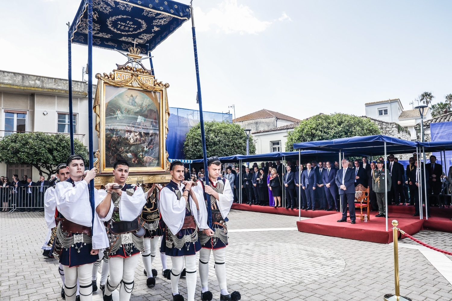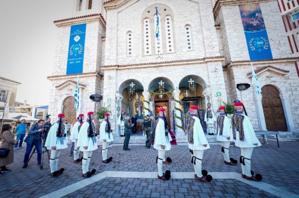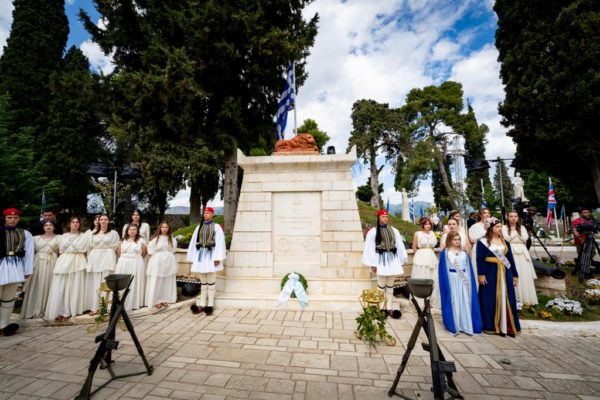 Ακολούθησαν η κατάθεση στεφάνου από τον Εξοχώτατο Πρόεδρο της Ελληνικής Δημοκρατίας κ. Κωνσταντίνο Τασούλα και η εκφώνηση του πανηγυρικού της ημέρας από τον Εξοχώτατο Πρωθυπουργό κ. Κυριάκο Μητσοτάκη, ενώ η υψίφωνος κα Βίβιαν Ντάγκλας απέδωσε το μοιρολόι «Να ζει το Μεσολόγγι».