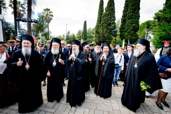 Ακολούθησε η επίσημη Δοξολογία, προεξάρχοντος του Μακαριωτάτου Αρχιεπισκόπου Αθηνών και πάσης Ελλάδος κ. κ. Ιερωνύμου Β’, ο οποίος εκφώνησε την ακόλουθη πανηγυρική ομιλία: