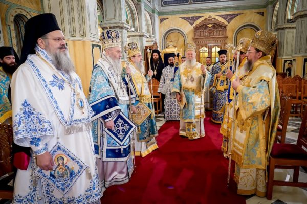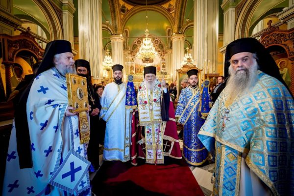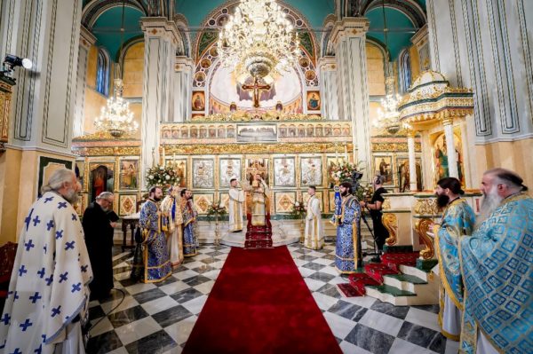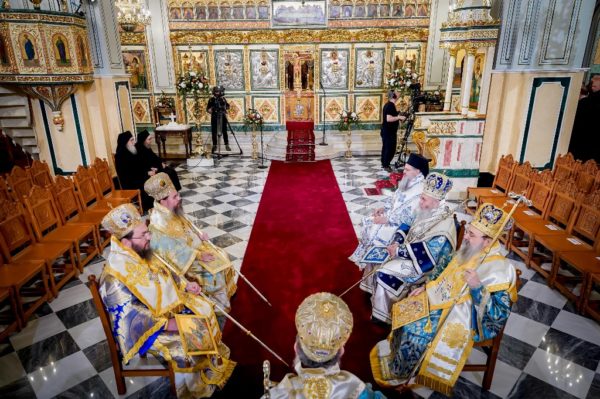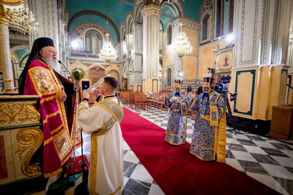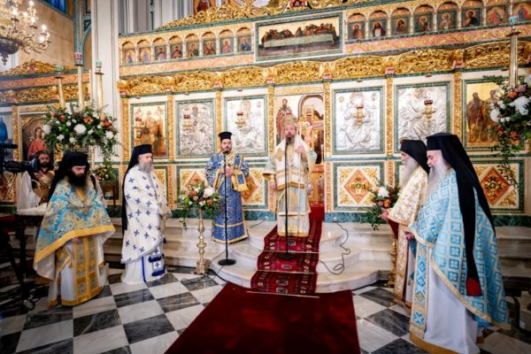 Στον Ιερό Μητροπολιτικό Ναό Αγίου Σπυρίδωνος τελέσθηκαν ο Όρθρος και η πολυαρχιερατική Θεία Λειτουργία, προεξάρχοντος του Σεβασμιωτάτου Μητροπολίτου Χαλκίδος κ. Χρυσοστόμου, Αντιπροέδρου της Διαρκούς Ιεράς Συνόδου της Εκκλησίας της Ελλάδος και συλλειτουργούντων των Σεβασμιωτάτων Μητροπολιτών Πατρών κ. Χρυσοστόμου και Πολυανής και Κιλκισίου κ. Βαρθολομαίου, Μελών της Διαρκούς Ιεράς Συνόδου, των Σεβασμιωτάτων Μητροπολιτών Ναυπάκτου και Αγίου Βλασίου κ. Ιεροθέου και Αιτωλίας και Ακαρνανίας κ. Δαμασκηνού και του Θεοφιλεστάτου Επισκόπου Επιδαύρου κ. Νικοδήμου.