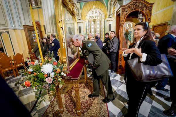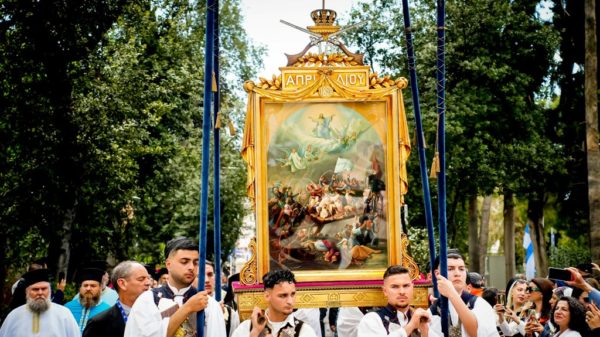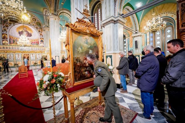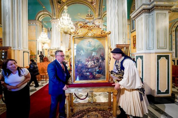 Το απόγευμα, η Εικόνα της Εξόδου, το Ιερό Λάβαρο και ο Σταυρός Ευλογίας του Επισκόπου Ρωγών Ιωσήφ θα επιστρέψουν με λιτανευτική πομπή στην αίθουσα του Μουσείου Ιστορίας και Τέχνης, όπου φυλάσσονται μόνιμα.