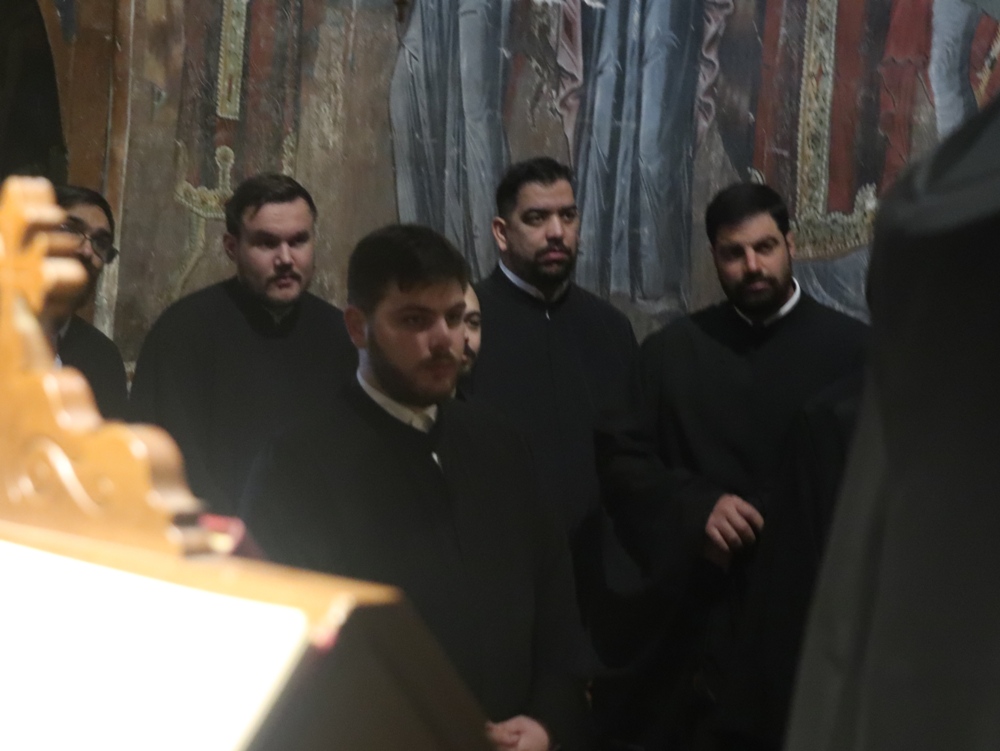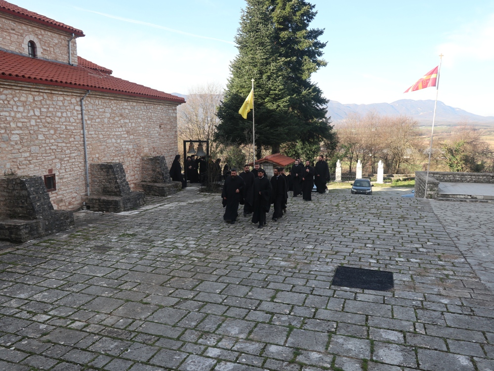 Η Θεία Λειτουργία τελέσθηκε με τη συμμετοχή του Ηγουμένου της Μονής και την παρουσία Εκπροσώπου του Υπουργείου Παιδείας και Θρησκευμάτων, του Πρωτοσυγκέλλου της Ιεράς Μητροπόλεως Ιωαννίνων και Σχολάρχη, Πατέρων της Μονής και Κληρικών της Ιεράς Μητροπόλεως Ιωαννίνων, Εκπαιδευτικών και των Ιεροσπουδαστών.