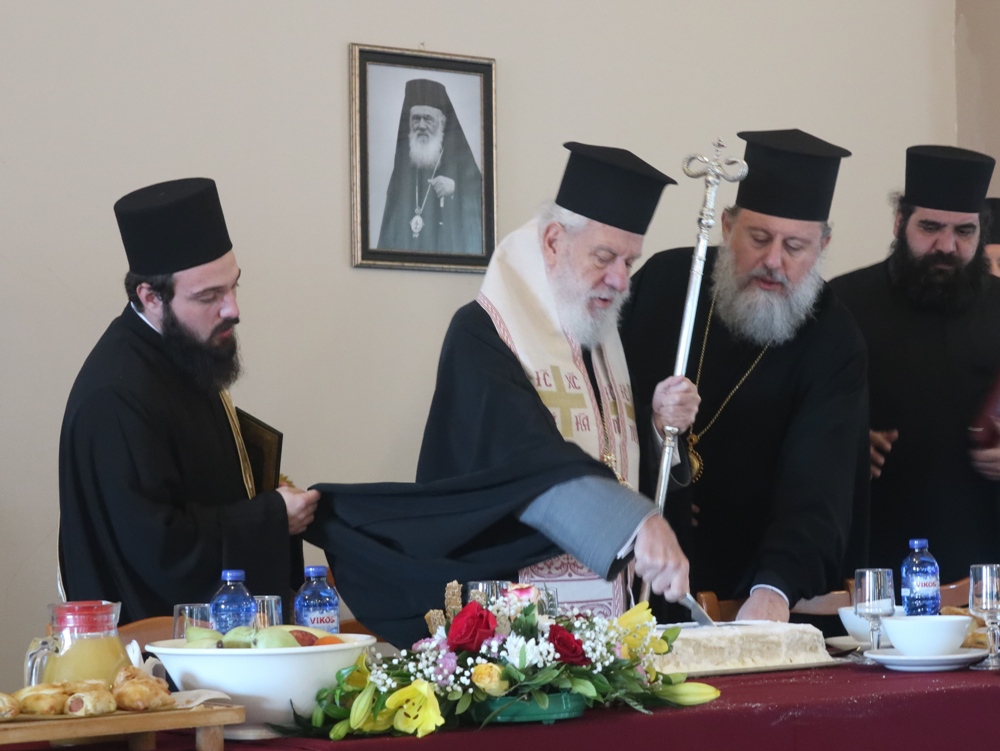 Μετά το πέρας της Ακολουθίας, στην μεγάλη Τράπεζα της Μονής ευλογήθηκε η κοπή της πίτας του Αγίου Βασιλείου.