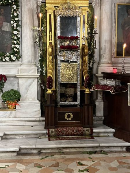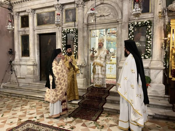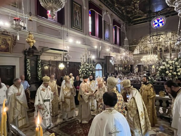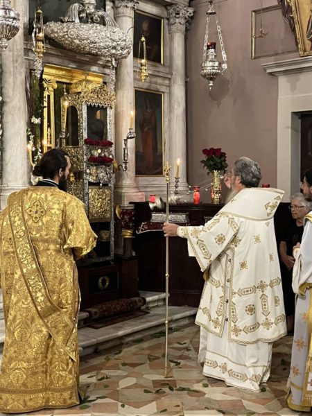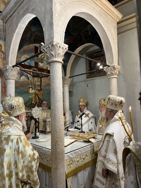 Συνεχίστηκαν το πρωί της Τρίτης 12 Αυγούστου, με την τέλεση στο Ιερό Προσκύνημα του Αγίου Σπυρίδωνος Αρχιερατικού Συλλείτουργου, στο οποίο προεξήρχε ο Σεβασμιώτατος Μητροπολίτης Λευκάδος και Ιθάκης κ. Θεόφιλος και συλλειτούργησαν οι Σεβασμιώτατοι Μητροπολίτες Ζακύνθου και Στροφάδων κ. Διονύσιος, Θεσσαλιώτιδος και Φαναριοφερσάλων κ. Τιμόθεος, ο Θεοφιλέστατος Επίσκοπος Κοτυαίου κ. Διονύσιος, βοηθός επίσκοπος της Ιεράς Μητροπόλεως Ιταλίας, και ο οικείος ποιμενάρχης Σεβασμιώτατος Μητροπολίτης Κερκύρας, Παξών και Διαποντίων Νήσων κ. Νεκτάριος, οι εκδηλώσεις για την ανάμνηση του θαύματος του Αγίου Σπυρίδωνος, με το οποίο διασώθηκε το νησί από την πολιορκία των Οθωμανών Τούρκων το 1716.