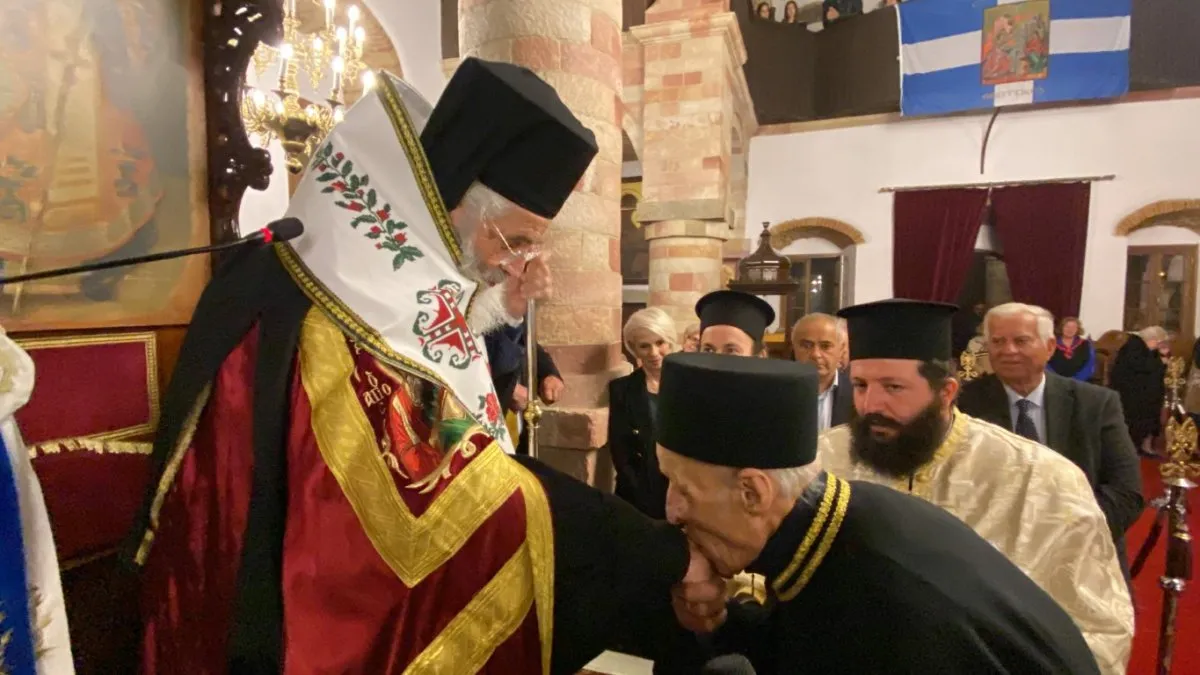 Στο τέλος του Εσπερινού ο Μητροπολίτης απένειμε το οφφίκιο του Λαμπαδαρίου Ιεροψάλτου εις τον επί 40 χρόνια διακονούντα το αριστερό αναλόγιο του Μητροπολιτικού Ναού του Ευαγγελισμού της Θεοτόκου Λέρου κ. Ιωάννη Γκιουζέππο.