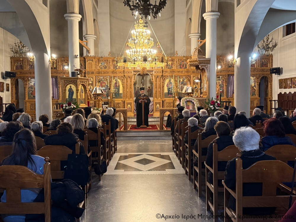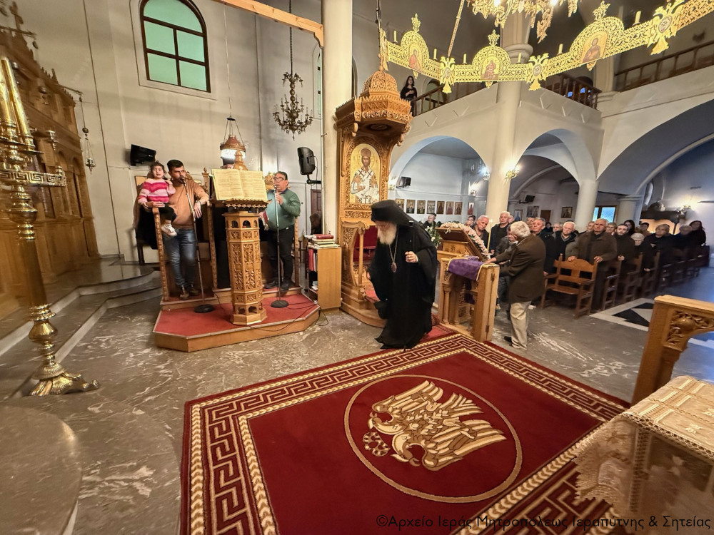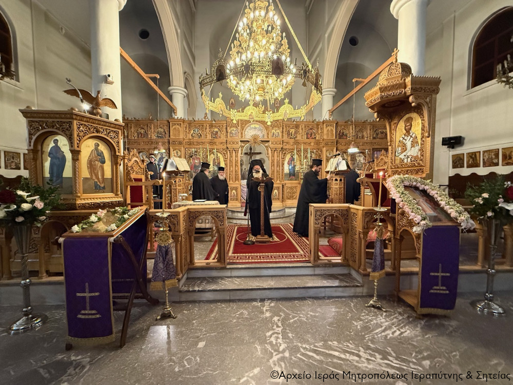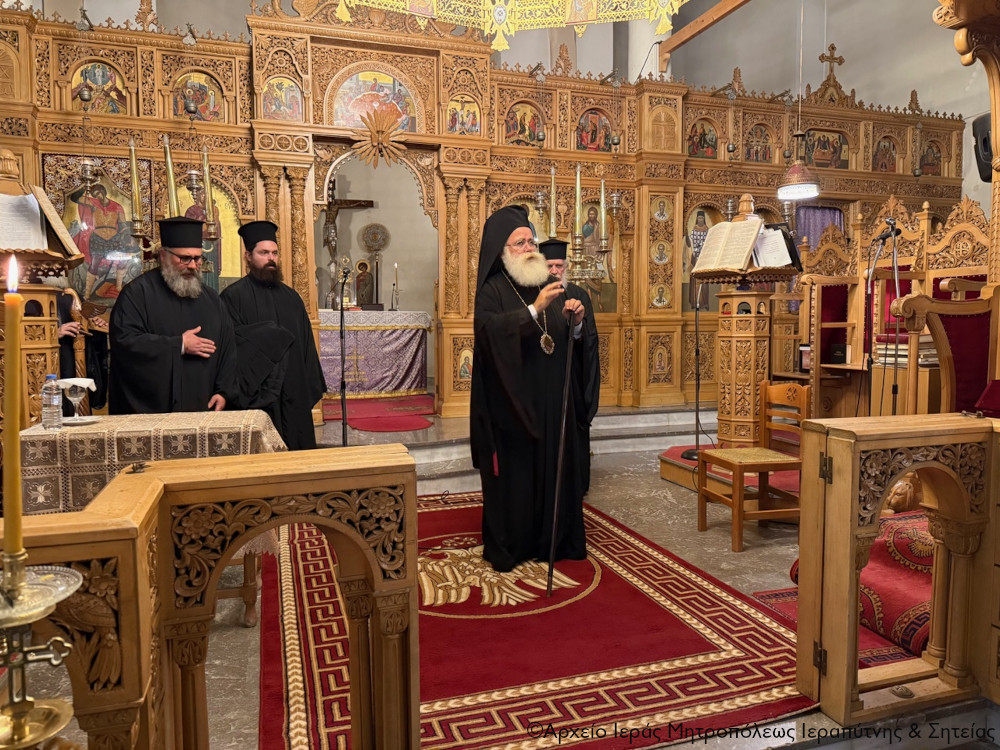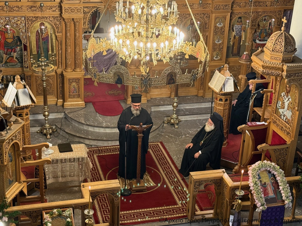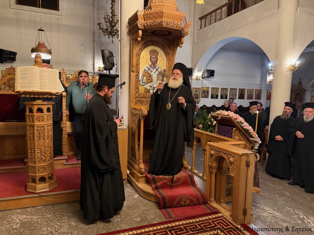 Το απόγευμα της Β΄ Κυριακής των Νηστειών, 8 Μαρτίου 2026, ο Σεβ. Μητροπολίτης Ιεραπύτνης και Σητείας κ. Κύριλλος χοροστάτησε στην ακολουθία του Κατανυκτικού Εσπερινού στον Ιερό Ναό Αγίου Γεωργίου πόλεως Σητείας.