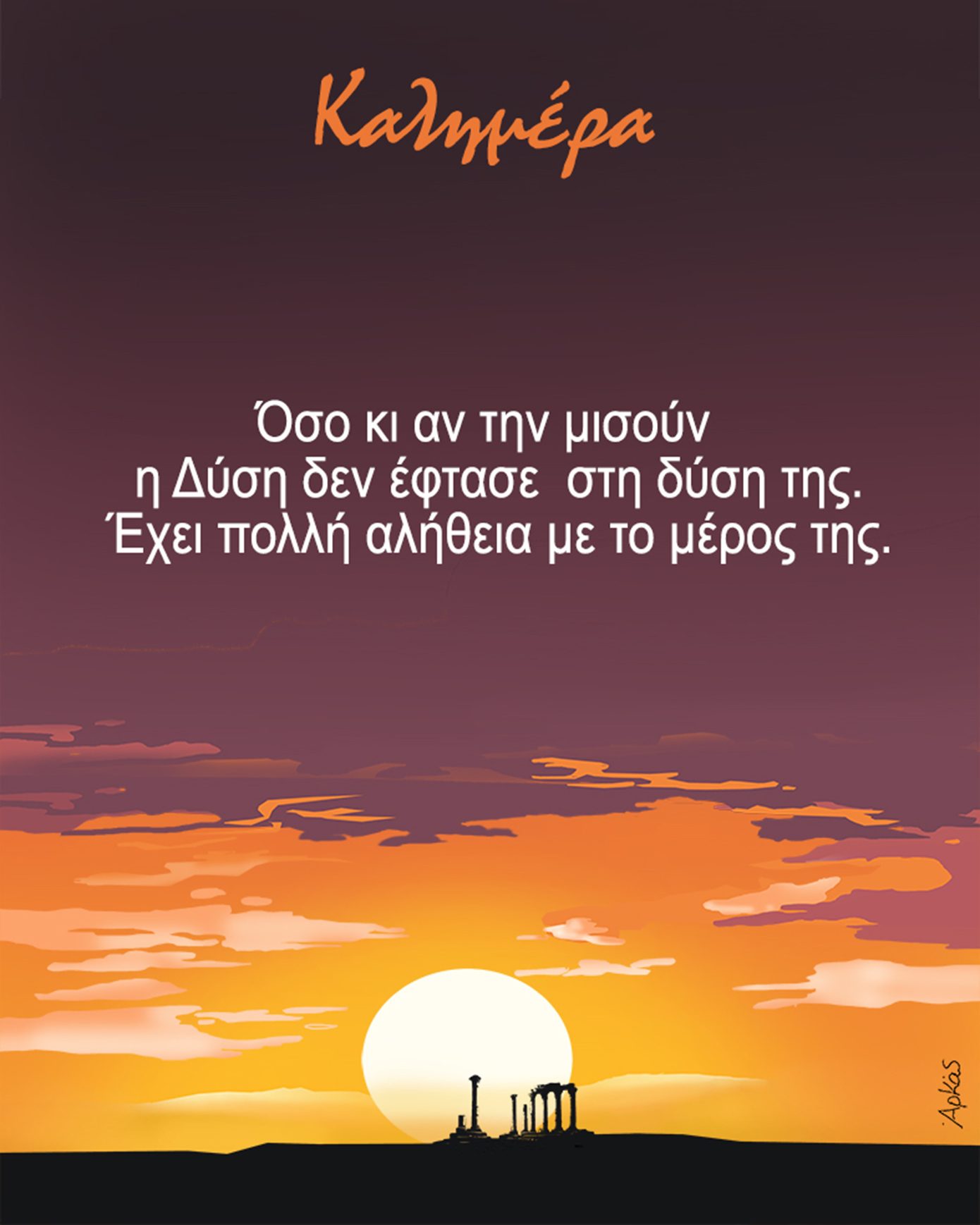 Στο σημερινό του σκίτσο – «καλημέρα» σχολιάζει πως «Όσο και να την μισούν η Δύση δεν έφτασε στη δύση της. Έχει πολλή αλήθεια με το μέρος της».