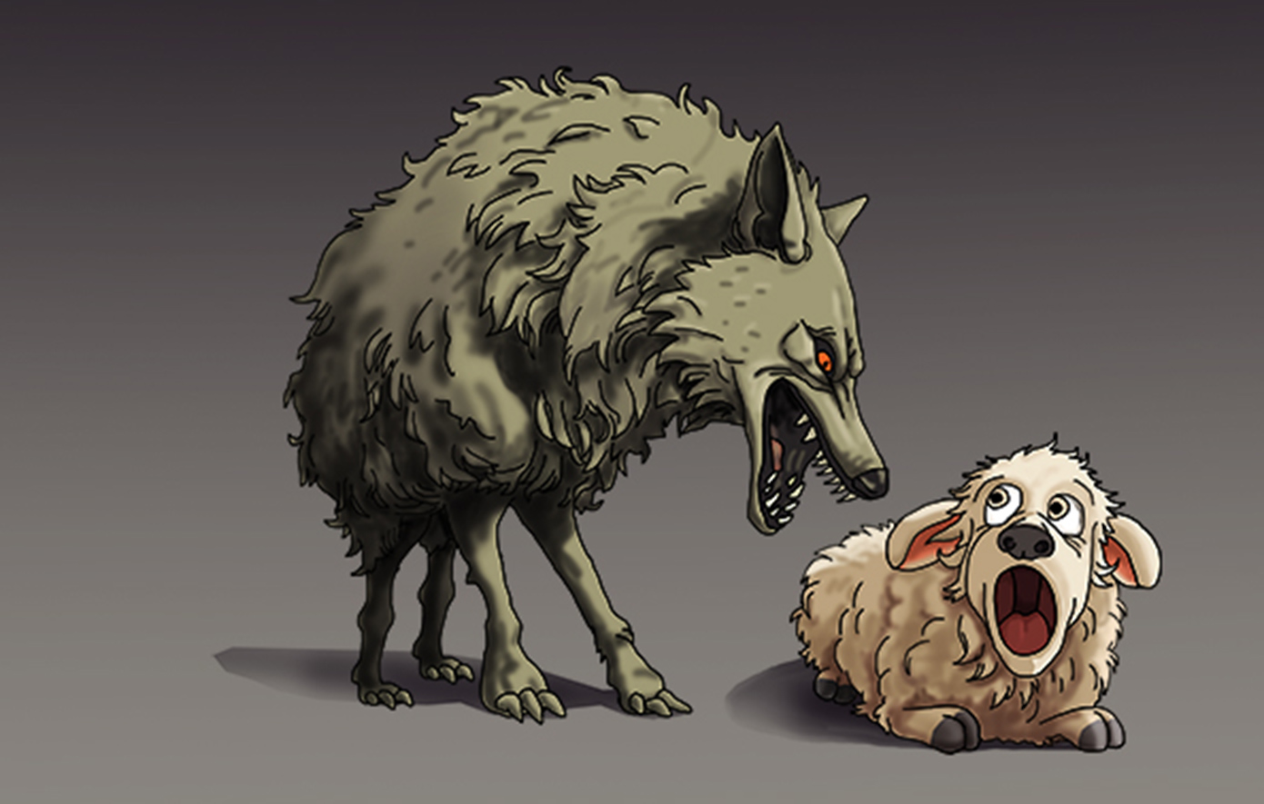 Στην εικόνα, ένας άγριος και πεινασμένος λύκος στέκεται πάνω από ένα τρομαγμένο, ανήμπορο πρόβατο, έτοιμος να το κατασπαράξει. «Μα εγώ είμαι με το μέρος σου» είπε το πρόβατο, «υποστήριξα ακόμα και το δικαίωμά σου να τρως πρόβατα». «Μισώ τους δικαιωματιστές» γρύλισε ο λύκος.