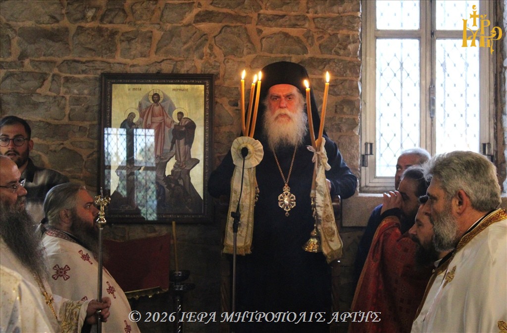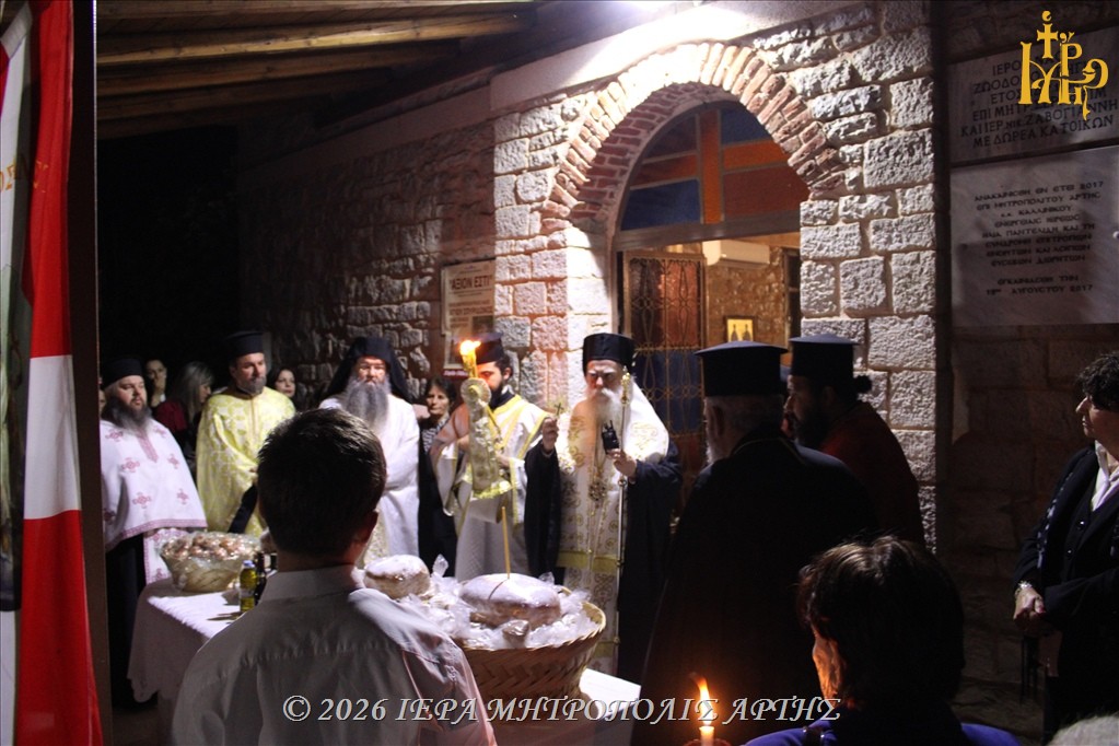 Την Πέμπτη της Διακαινησίμου, 16 Απριλίου 2026, το απόγευμα, στον πανηγυρίζοντα Ενοριακό Ιερό Ναό της Ζωοδόχου Πηγής Συκεών Άρτης, ετελέσθη Μέγας Εσπερινός, χοροστατούντος του Σεβασμιωτάτου Μητροπολίτου Άρτης κ. Καλλινίκου.