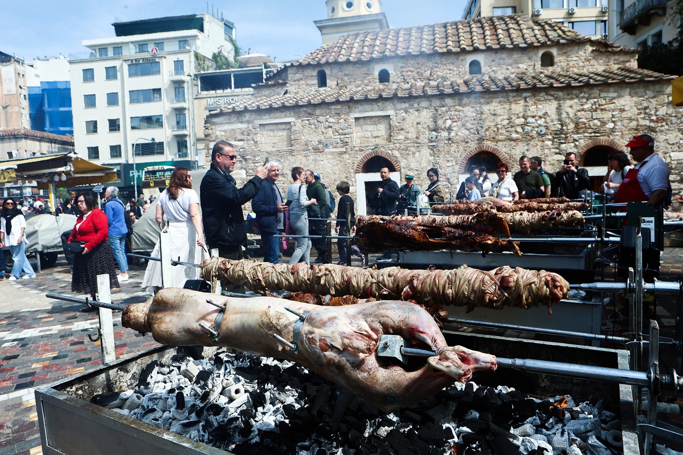 Σε πόλεις και χωριά, από την Κρήτη μέχρι τη Μακεδονία και από τα νησιά του Αιγαίου μέχρι την Ήπειρο, οι σούβλες πήραν φωτιά από νωρίς. Ακόμα και στο κέντρο της Αθήνας, και στην πλατεία Μοναστηρακίου τα πλάνα με τα αρνιά και τα κοκορέτσια έγιναν viral από τα βίντεο των τουριστών