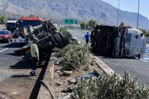 «Λόγω ανατροπής φορτηγού στο 56ο χλμ. Ν.Ε.Ο.Α.Κ. και εκδήλωσης πυρκαγιάς σε αυτό πραγματοποιούνται κυκλοφοριακές ρυθμίσεις από δυνάμεις της Τροχαίας στο σημείο, ενώ η Πυροσβεστική επενέβη άμεσα για την κατάσβεση της πυρκαγιάς.