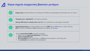 Μετά από μια πολύπαθη πορεία, όπως είπε η κα. Βρεττού που χαρακτηρίστηκε μεταξύ άλλων από αδύναμους ισολογισμούς, οι μέτοχοι αποφασίζουν σήμα να αφήσουν όλα αυτά πίσω τους ενώ παράλληλα σηματοδοτεί το όραμα για μια ανταγωνιστική τράπεζα, διπλάσια σε μέγεθος και υψηλή απόδοση κεφαλαίων.