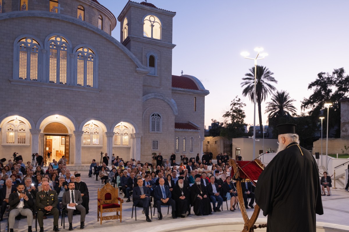 Ο Αρχιεπίσκοπος Κύπρου κ.κ. Γεώργιος απηύθυνε χαιρετισμό στην εκδήλωση των κατεχομένων ενοριών και κοινοτήτων της Ιεράς Αρχιεπισκοπής Κύπρου με τίτλο «Κύπρος: Φάρος Πίστης και Ελευθερίας – Τιμώντας τους ήρωες της Μεσαορίας, ΕΟΚΑ 1955-1959», που πραγματοποιήθηκε, χθες, στην πλατεία του Καθεδρικού Ναού Αποστόλου Βαρνάβα. «Η ελευθερία και η πίστη παραμένουν αδιαπραγμάτευτες αξίες που ενώνουν το έθνος και εμπνέουν τις νεότερες γενιές», τόνισε μεταξύ άλλων.