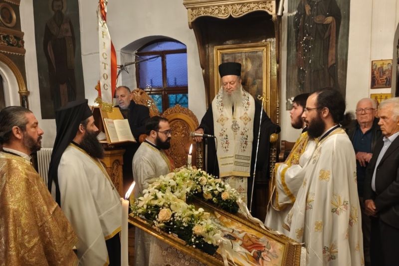 Ο Σεβασμιώτατος Μητροπολίτης Χαλκίδος κ. Χρυσόστομος, κατά τον Εσπερινό της εορτής του αγίου, χοροστάτησε στον πανηγυρίζοντα ομώνυμο Ενοριακό Ι. Ναό των Βούνων, στους πρόποδες του όρους Δίρφυς.