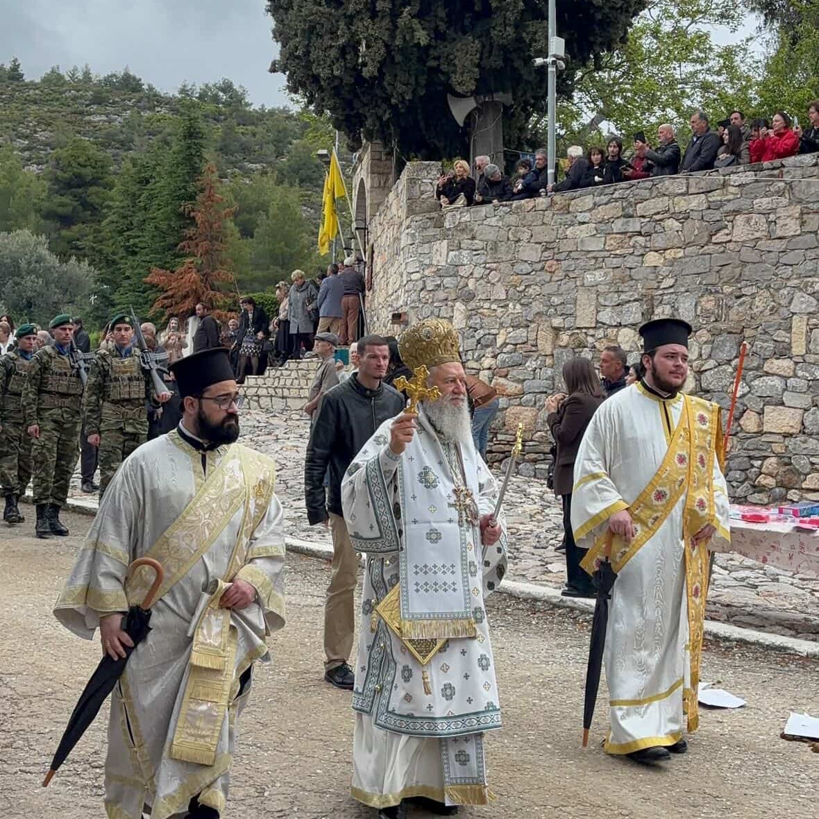 Το ίδιο πρωί, ο Θεοφιλέστατος Επίσκοπος Σκοπέλου κ. Νικόδημος, ως εκπρόσωπος του Μητροπολίτου Χαλκίδος, προέστη στον επίσημο εορτασμό του αγ. Γεωργίου ως προστάτου του Πεζικού, στη Σχολή Πεζικού Χαλκίδος, παρουσία πολιτειακών και στρατιωτικών αρχών της Πατρίδος μας.