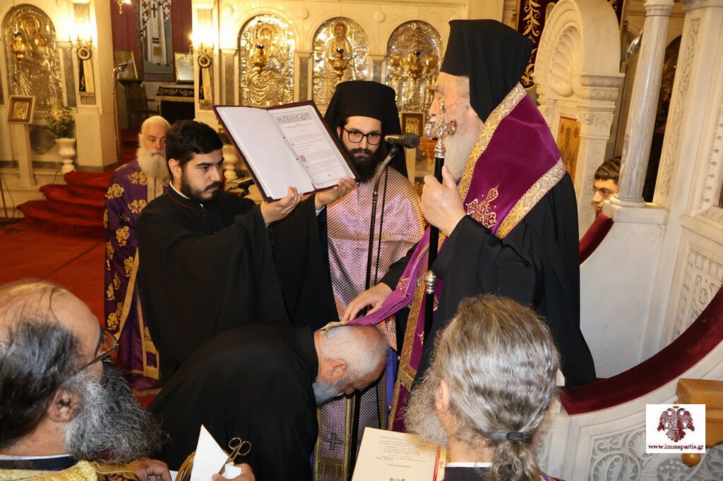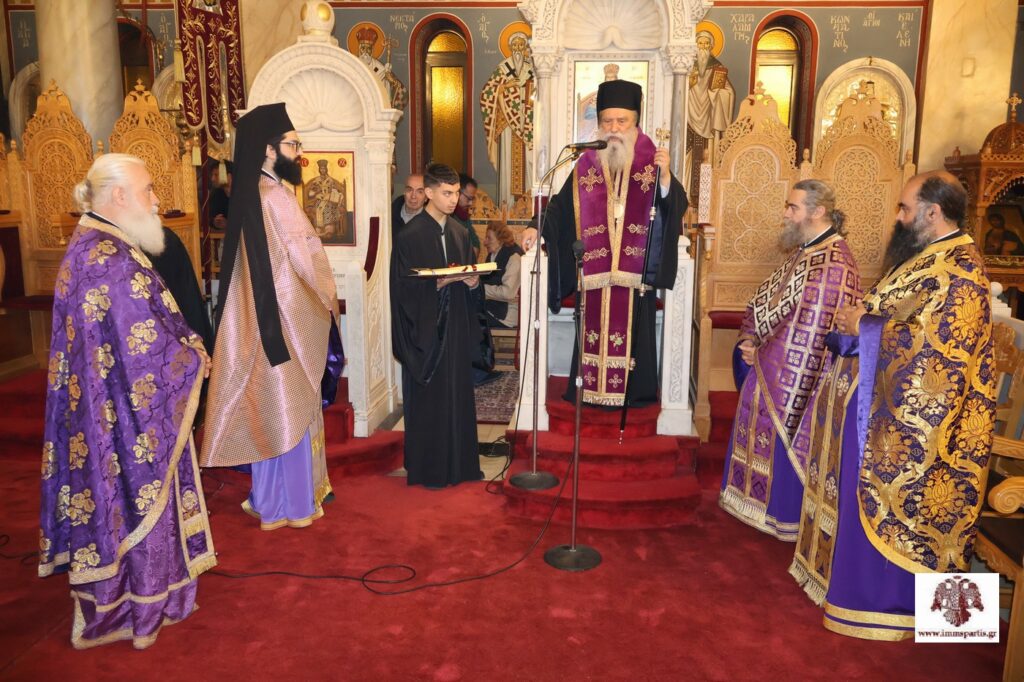 Κατά τη διάρκεια της ιερής ακολουθίας, ο Σεβασμιώτατος χειροθέτησε Αναγνώστη τον κ. Ιωάννη Σιτέ, πρώην Σχολικό Σύμβουλο Φυσικών Επιστημών, τον οποίο εκθείασε για την βαθιά πίστη, την αφοσίωσή του στην Εκκλησία και την ευαισθησία του σε κοινωνικά θέματα. Από την πλευρά του, ο κ. Σιτές ευχαρίστησε θερμά τον Ποιμενάρχη μας για την εξαιρετική τιμή. Στη σύντομη ομιλία του, αναφέρθηκε στα προβλήματα που ταλανίζουν την Πατρίδα μας, επικεντρώνοντας στην Παιδεία στην οποία απαιτείται επανεκκίνηση με οδηγό την Εκκλησία.