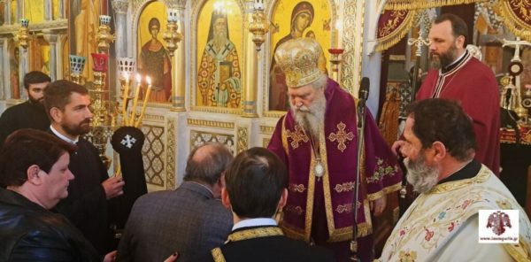 Ο σεπτός Ποιμενάρχης στην αντιφώνησή του μίλησε αρχικά για τη σημασία των Θείων Λειτουργιών των Προηγιασμένων Τιμίων Δώρων και την ανάγκη της συχνής Μετάληψης των Αχράντων Μυστηρίων από τους χριστιανούς. Ακολούθως, αναφέρθηκε στους δύο τιμώμενους Αγίους της ημέρας: τον υπέρμαχο της Ορθοδοξίας Άγιο Νικηφόρο Πατριάρχη Κωνσταντινουπόλεως και την Οσία Υπομονή, που ήταν μητέρα του τελευταίου Αυτοκράτορα του Βυζαντίου, εθνομάρτυρα Κωνσταντίνου Παλαιολόγου.