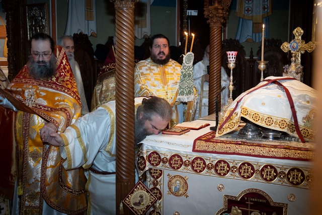 Προ της απολύσεως, ο Πανιερώτατος χειροθέτησε σε αναγνώστη τον Ευστάθιο Παπαβασιλείου, υιό του νέου Πρεσβυτέρου.