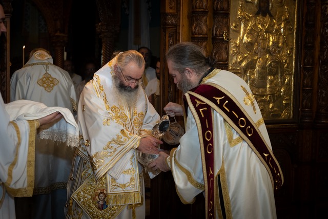 Της αρχιερατικής θείας λειτουργίας προεξήρχε ο Πανιερώτατος Μητροπολίτης Λεμεσού κ. Αθανάσιος, συλλειτουργούντων των Θεοφιλεστάτων Επισκόπων Αμαθούντος κ. Νικολάου και Νεαπόλεως κ. Πορφυρίου. Τους αρχιερείς περιέβαλαν, κύκλω του ιερού θυσιαστηρίου, πλήθος ιερέων και διακόνων, από Κύπρο και Ελλάδα.