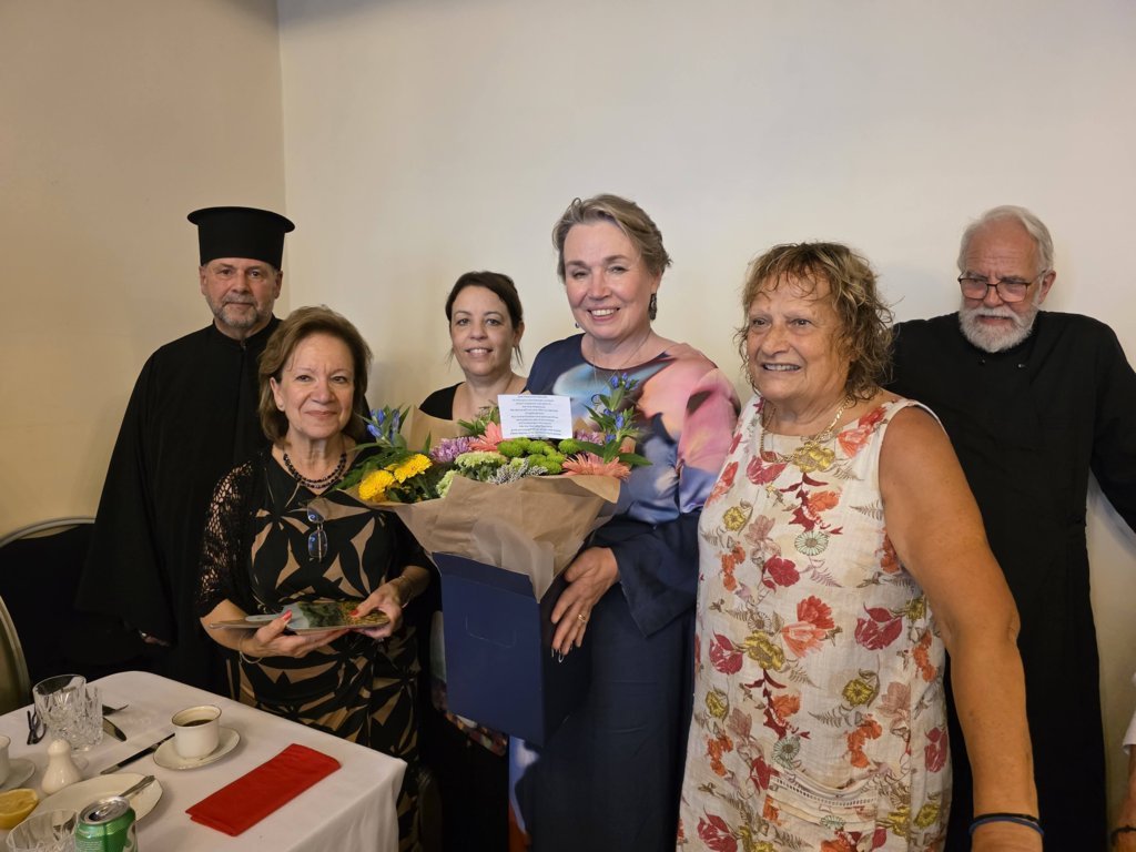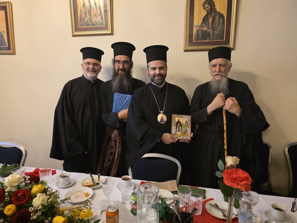 Μετά το τέλος της χειροτονίας, ο νέος Πρεσβύτερος, από κοινού με τον πνευματικό του πατέρα, τον Πρεσβύτερο κ. Tim Pearce από την Κοινότητα του Lampeter της Βόρειας Ουαλίας, εξέφρασαν τη βαθιά τους ευγνωμοσύνη προς τον Θεοφιλέστατο για τις συχνές ποιμαντικές του επισκέψεις στις αγγλόφωνες κοινότητες της περιοχής. Ως ένδειξη τιμής και σεβασμού, του πρόσφεραν μια ιερή εικόνα του τοπικού Αγίου Cybi Felyn.