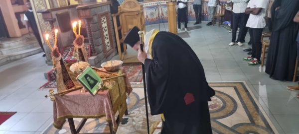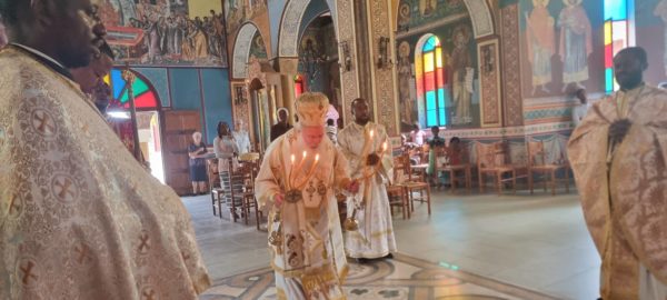 Ο Μητροπολίτης Κινσάσας κ. Θεοδόσιος ήταν να λειτουργήσει και να τελέσει το Τρισάγιο στον Ιερό Ναό Κοιμήσεως της Θεοτόκου Κισάντου, δωρεά του μακαριστού Αγίου Ροδοστόλου, που τις ημέρες αυτές είχαν τελεσθεί τα θυρανοίξια και λίγο αργότερα τα εγκαίνια. Για λόγους ανεξάρτητους του θελήσεως του, δεν μπόρεσε να μεταβεί στο Κισάντου και τέλεσε το Τρισάγιο στην Ιερά Μονή Οσίου Αθανασίου του Αθωνίτου.