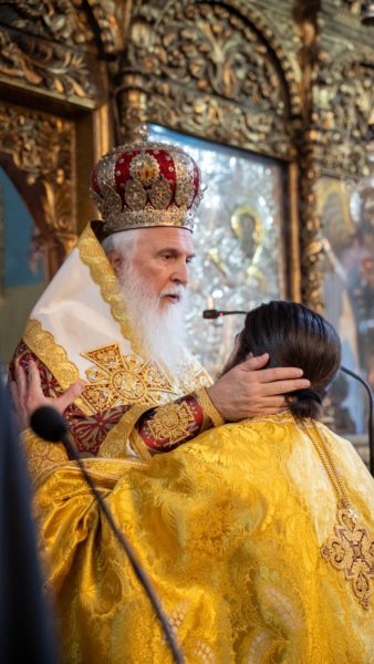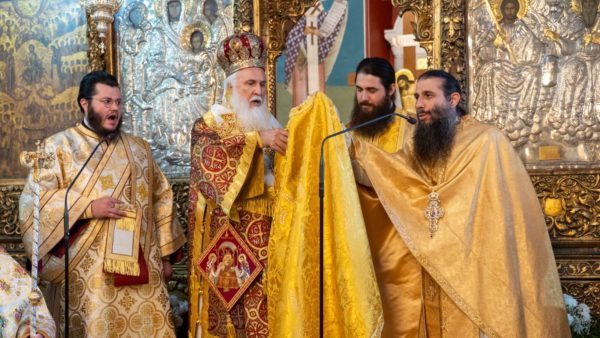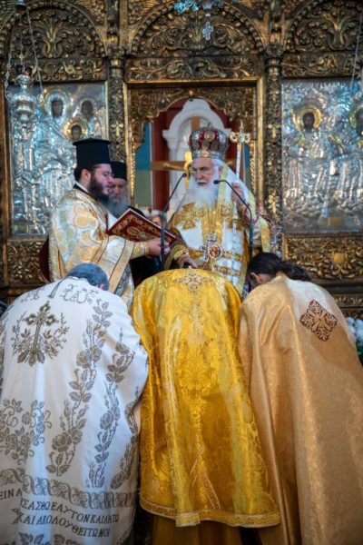 Προ του πέρατος της Ευχαριστιακής Συνάξεως, ο Σεβασμιώτατος Ποιμενάρχης κ. Ιερόθεος, υπό τις επευφημίες του λαού, χειροθέτησε σε Πρωτοπρεσβύτερο τον π. Ηλία, ο οποίος, στη συνέχεια, κατόπιν προτροπής του Σεβασμιωτάτου, διένειμε το αντίδωρο και δέχθηκε τις εγκάρδιες ευχές του πυκνού εκκλησιάσματος.