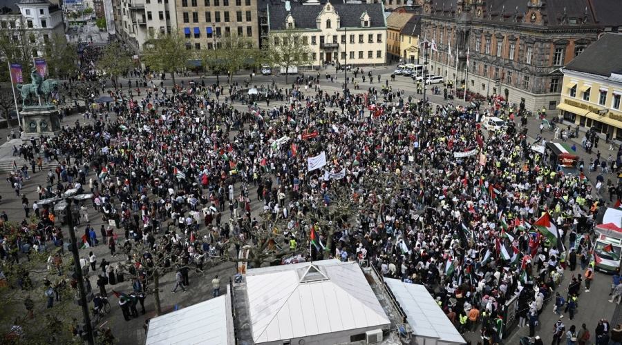 Οι περίπου 5.000 διαδηλωτές έκαναν πορεία από την κεντρική πλατεία του Μάλμε, κρατώντας παλαιστινιακές σημαίες και πλακάτ με συνθήματα όπως «Απελευθερώστε την Παλαιστίνη» και «η EUR νομιμοποιεί τη γενοκτονία».